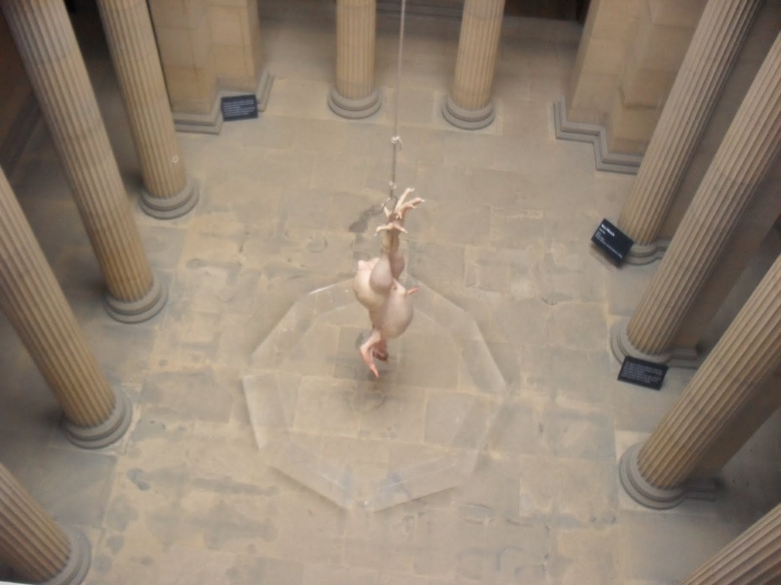 At the moment there are some crazy exhibitions going on there, called “Extraordinary Measures” (watch the video in this link!). In the hall there were pieces by Ron Mueck, I only remembered to get one picture, but they were mainly human figures (eg: a giant naked man!!) in strange sizes, too big or too small but so life-like it was scary! I got this picture of a chicken (I think?) hanging from the ceiling of the main hall: