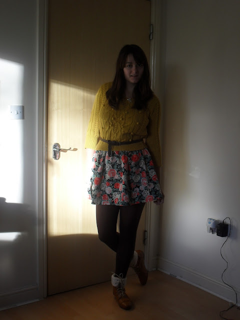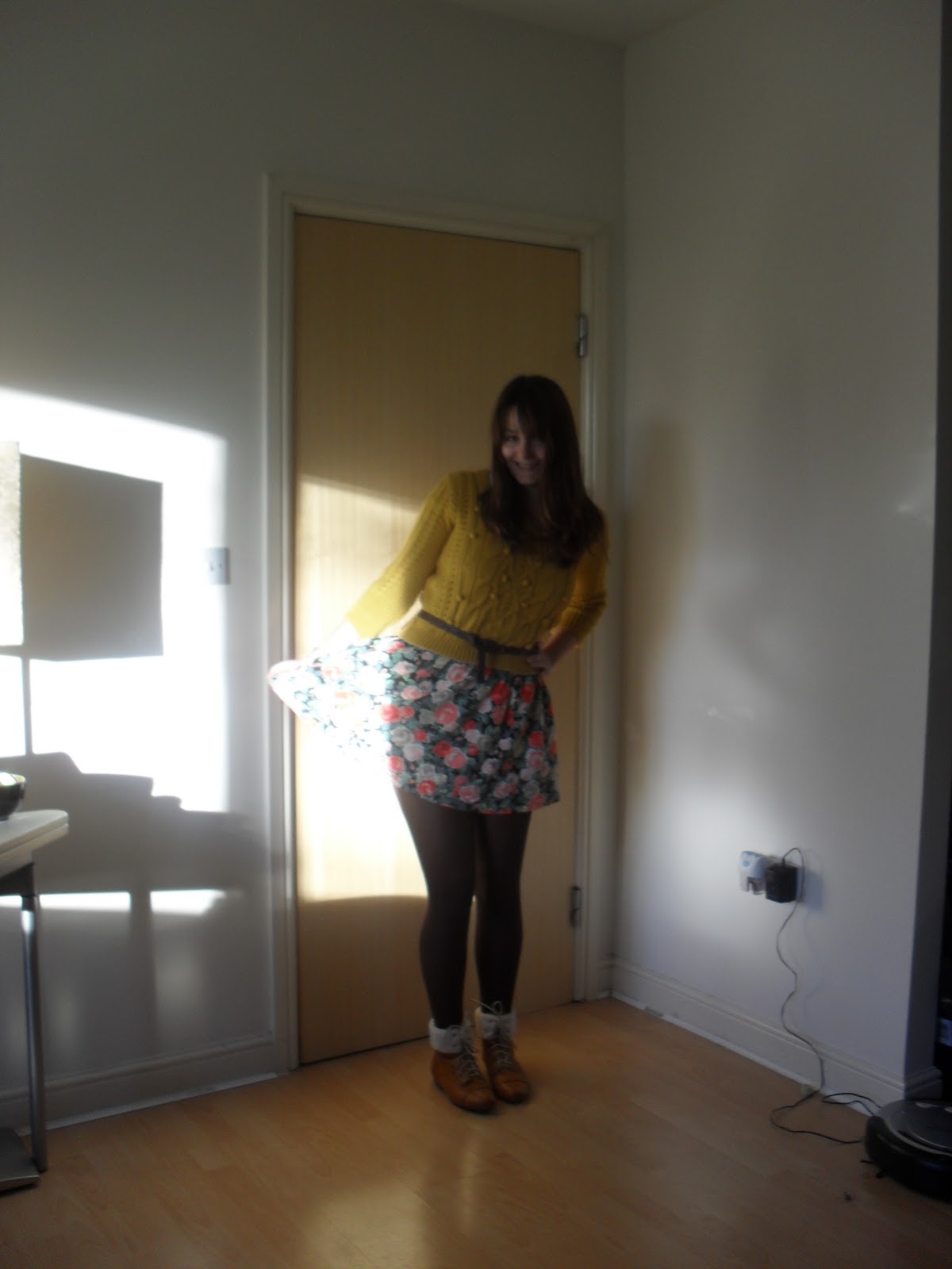 Ok, so this is my real outfit from today haha! Ben and I popped to the supermarket earlier to get our food shop, and we had a quick look in the clothes section and I came across this beauty! I’m loving the mustard yellow colour, the thick knit and the little bobbles on it!! It’s actually sort of cropped, I was going to wear it with jeans but it was too short, especially for this chilly weather so I think high waisted skirts/jeans will go really well with it!