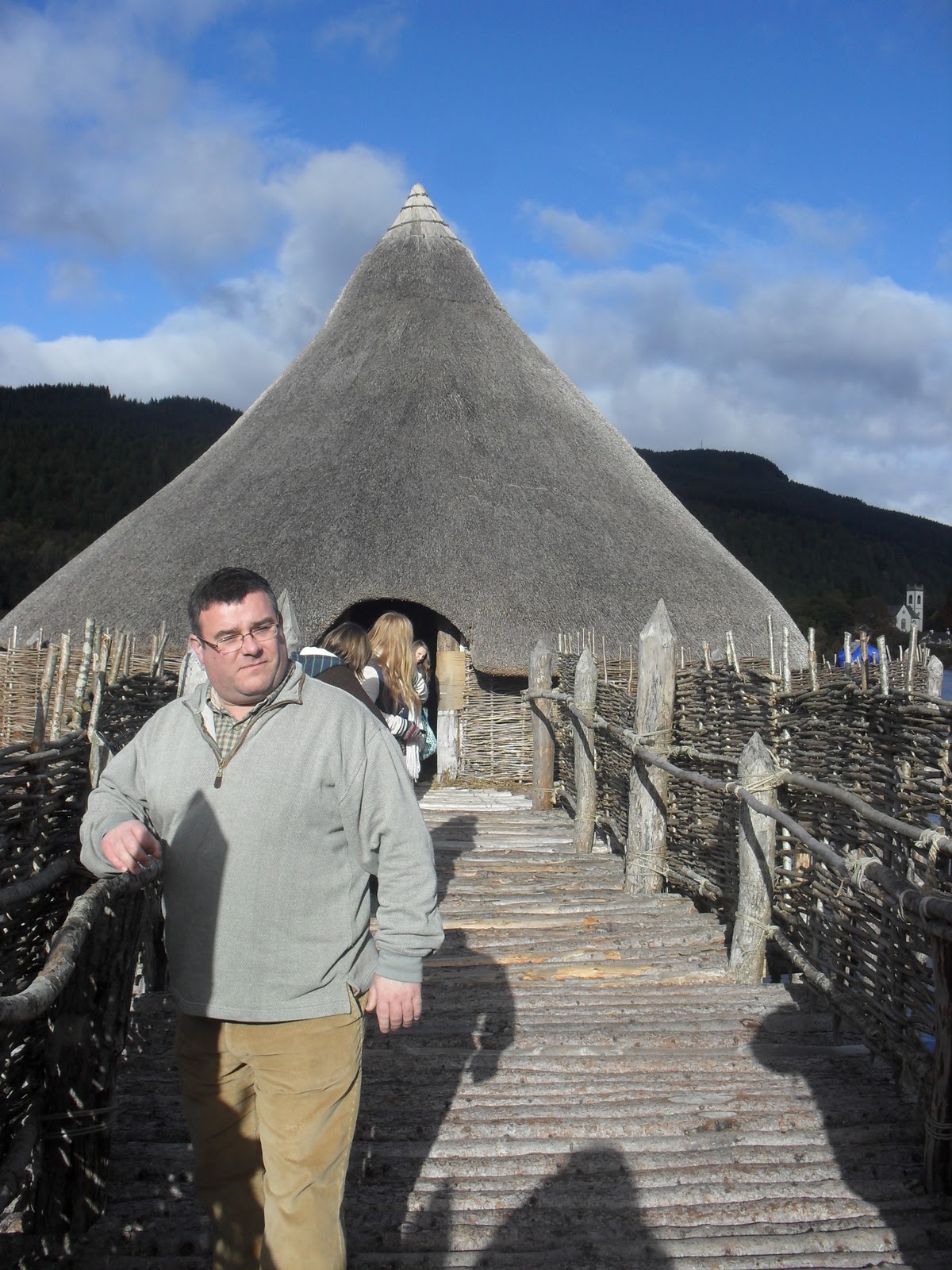 So as I mentioned, Ben and I went up to Pitlochry (well near there) this weekend to visit my parents and sister who are having a week’s holiday in a lodge there. We had a really lovely time. Even though we only got there on Saturday afternoon we managed to pack in quite a lot! On the Saturday we just went to a fish ladder at a dam but it was closed so we just had a little walk around it. Then yesterday we went to the Scottish Crannog Centre, where I took the pictures above, it’s so a lovely landscape around there, and oh the beautiful trees! Everyone got so fed up of me saying: “Look at how beautiful the trees are!”. So the Crannog Centre is a sort of museum about Crannogs, which are ancient houses that used to sit on the loch, see the picture below:
