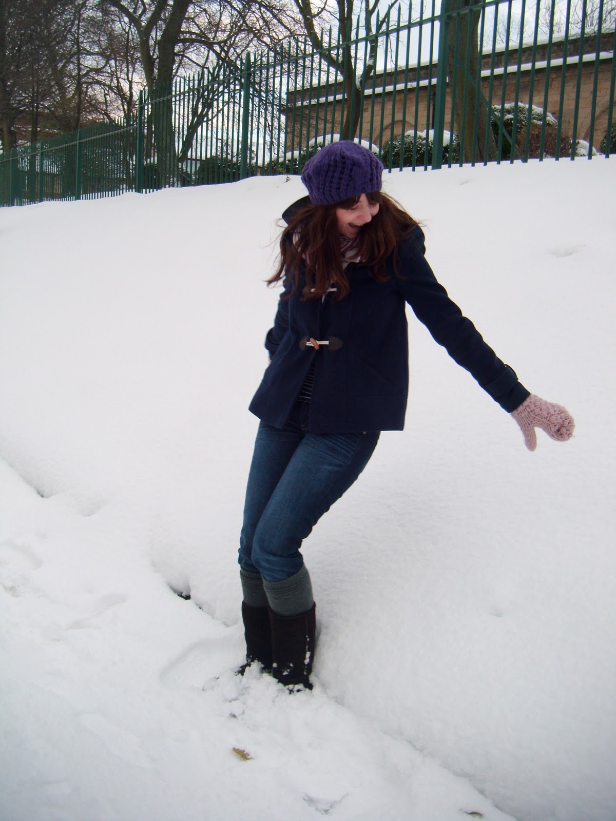 Still snooooowing. Is it ever going to stop?? This is the 8th day in a row we’ve had of it snowing, but at least it’s December now, that’s a bit more appropriate for snow I suppose. Did you know this is the earliest snow we’ve had in England for 17 years? Last time it snowed this early was my sister’s 1st birthday! And we lived in a house in the middle of nowhere (so we were stuck!) with no central heating, all we had were a few electric heaters…apparently when they gave my sister a bath then she used to turn blue with cold! (Fiiine I’ll post a picture from then hee hee! That’s my dad holding us =D)
