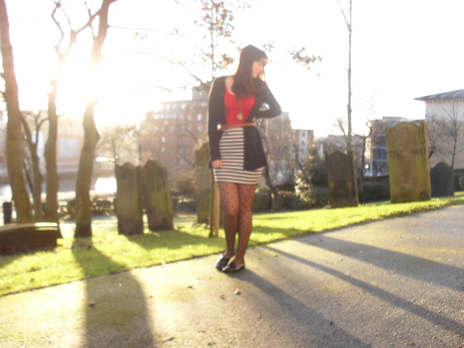 great photos! this outfit is really cute! love the stripes against the polka dots.