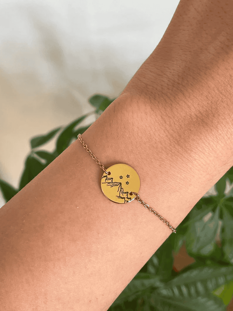 You know what they say, you can’t go wrong with jewellery! This dainty little bracelet is adorned with an engraving of the mountains and stars sigil of the Night Court, such a classic, but not overtly ACOTAR inspired. It’s also available in silver as well as gold.