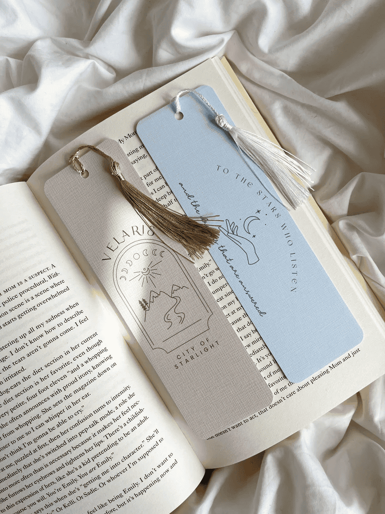 These Velaris bookmarks at £3.95 each or £6.50 for a pair make an excellent stocking filler gift. They can come with or without the tassle, and you’ve got the choice of the classic City of Starlight illustrations or the “stars who listen” quote.