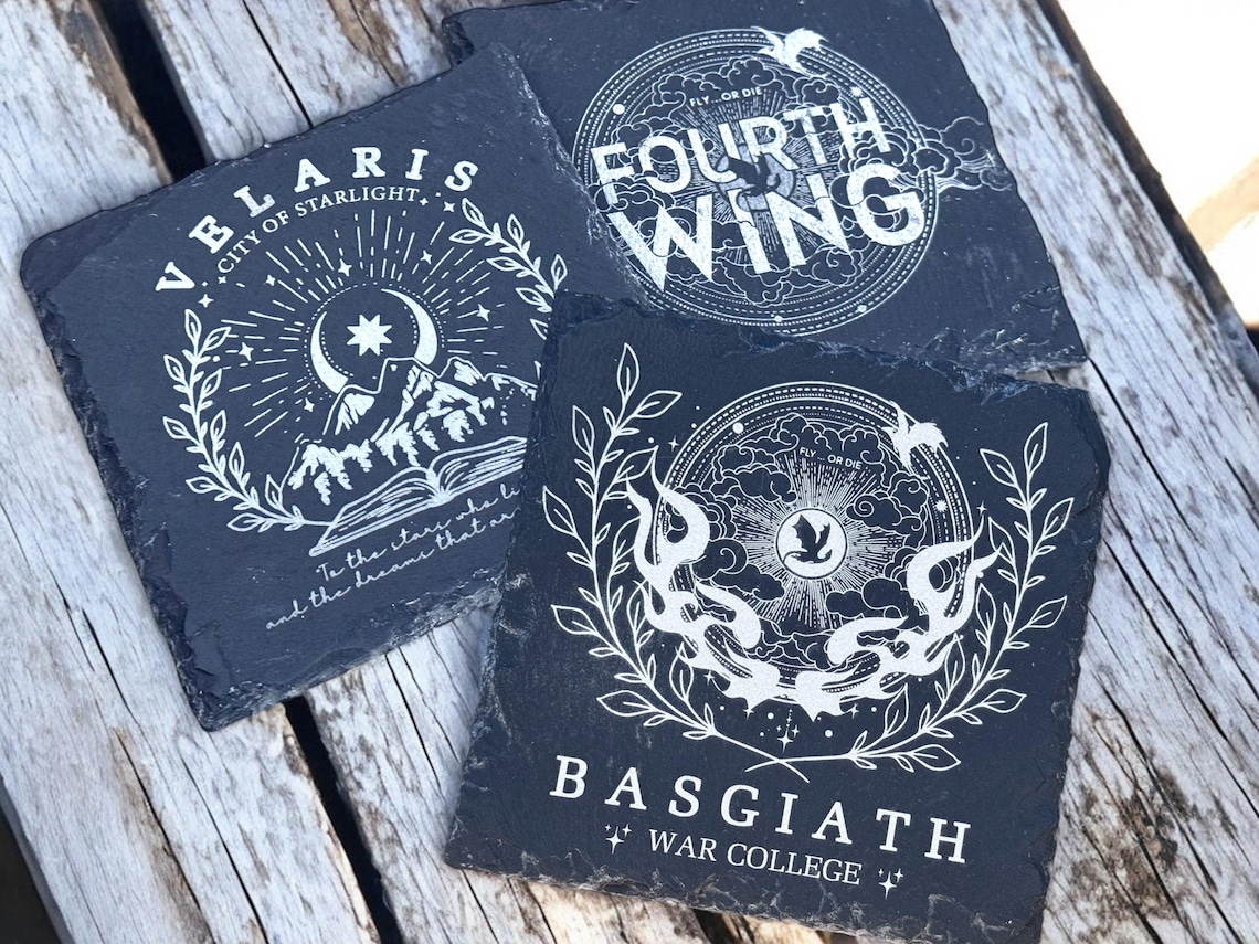 This Fourth Wing gift idea is a little different to the others on the list, but that’s why I like it so much! What’s the likelihood that your gift recipient will already have 10,000 bookmarks, water bottles and mugs? And what’s the likelihood they’ll have a set of Fourth Wing coasters? See my point?