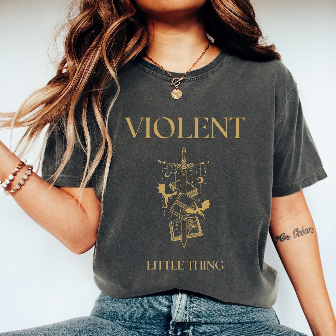 This Fourth Wing T shirt has the ever-popular “Violent Little Thing” phrase from the first book, which then lends itself to Xaden’s nickname for Violet (which has all the BookTok girlies giggling and kicking their feet), Violence: