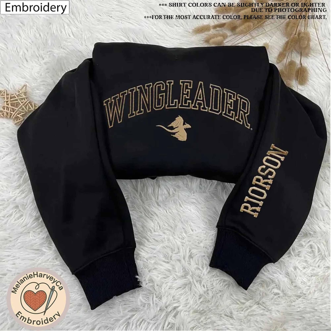 The wing leader embroidered sweatshirt is a custom order Fourth Wing gift, which just gives it that little extra personal touch. I also love that the listing shows a video of one of their products being embroidered too!