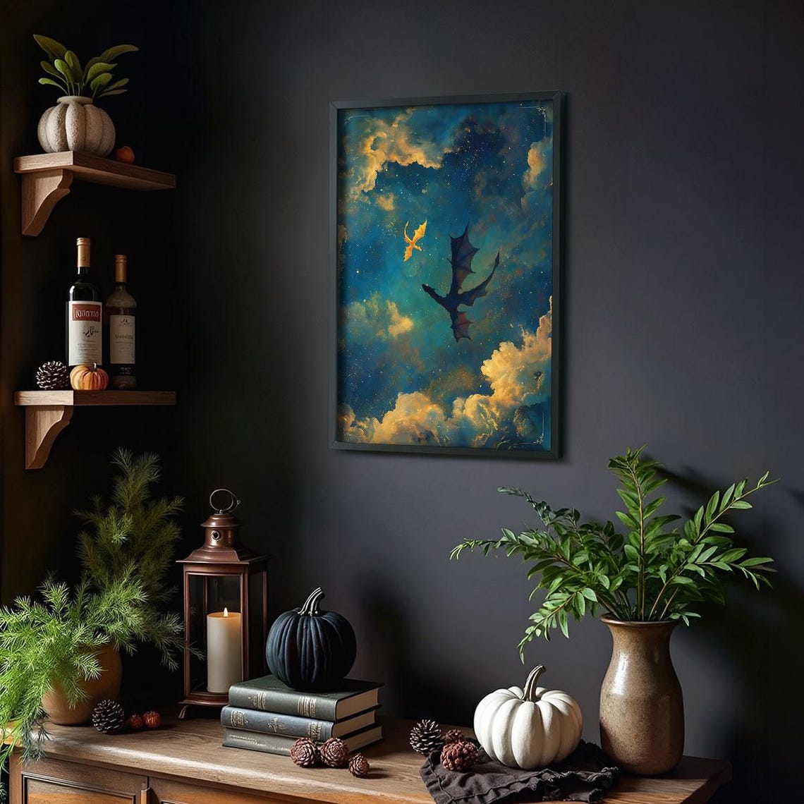 Even if they don’t have bookshelves that are crying out for some trinkets, this can make a cute addition to a cosy bedroom or gallery wall in a living room – it’s not overly obviously Fourth Wing related with the iconic dragons flying through the skies, but has a gloriously gorgeous fantasy feel.